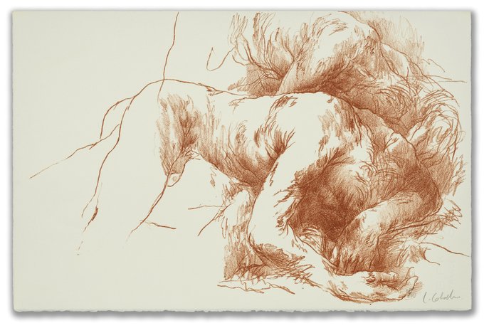 Art for £500 or less: The price includes UK domestic shipping, with international shipping at cost. This work £450: Luis Caballero (1943-1995) Three Figures, 1989, lithograph, 33cm x 50cm (A2 in mount), unframed. #maleform #henrymillerfineart #artforsale #luiscaballero #meninart