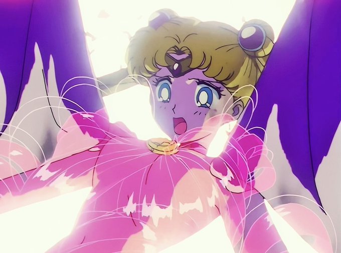 セーラームーンは神聖な月のプリンセスだけが使える銀水晶の力で変身を保っていた為、エンディミオン以外の男(フィオレ)に強い力で胸に触れられ続けたことで純潔を失いセーラー戦士の姿を保つことができずスーツがリボンに戻ってしまいフィオレの目の前で裸にされてしまった説