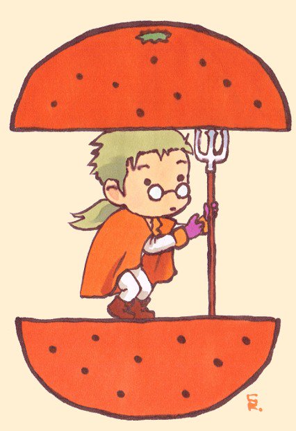 あとの4人も描きたくてイメージカラーの野菜や果物を探したんですが、王侯貴族にナス(ミカエル様)や赤カブ(モニカ様)は結びつかず断念しました。😞 #ロマサガ3