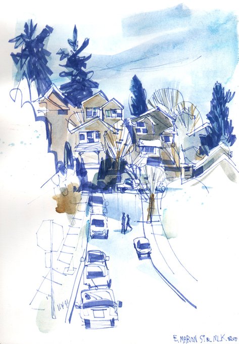 sketches from last week -- 5 straight days of clear blue skies, a miracle for this time of year in Seattle. #urbansketching #seattle