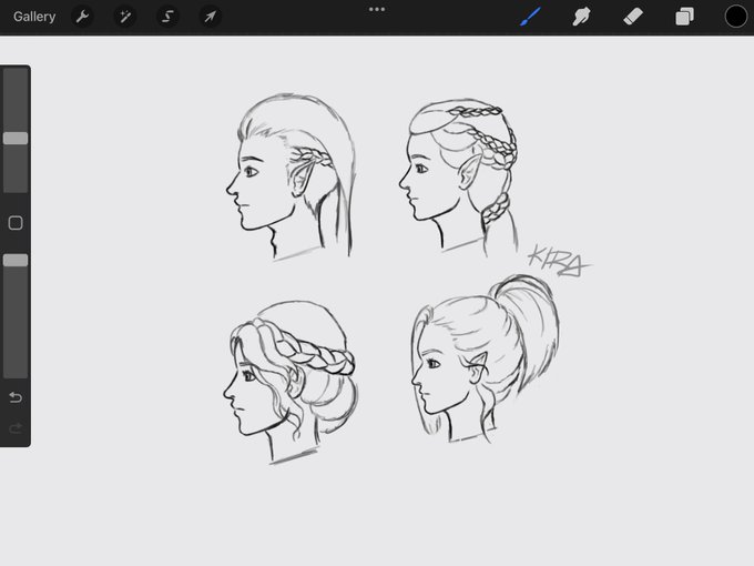 A side view head study of Kaeden, Tarasylla, Evangeline, and Aloiene from our Long Live!Verse worldstate in DA.💖 I also put in basic colors to see how they’d look🤔
