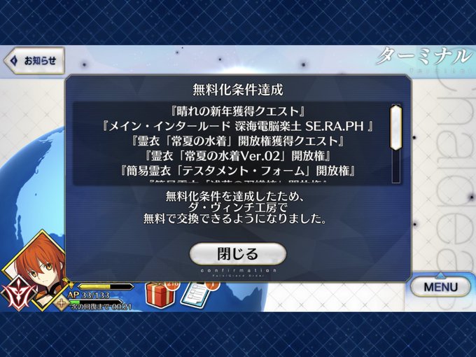 1部終わりました… タイトル画面変わったりやること一気に増えた… どこから手をつけようか(;´д`) #FGO