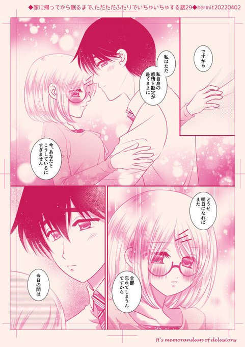 ◆29◆家に帰ってから眠るまでふたりでただただいちゃいちゃする話 #漫画 #掟上今日子 #眼鏡 #白髪 #隠館厄介 #いちゃらぶ #甘々 #掟上今日子の備忘録 #忘却探偵シリーズ https://t.co/CV4fXYTbMu