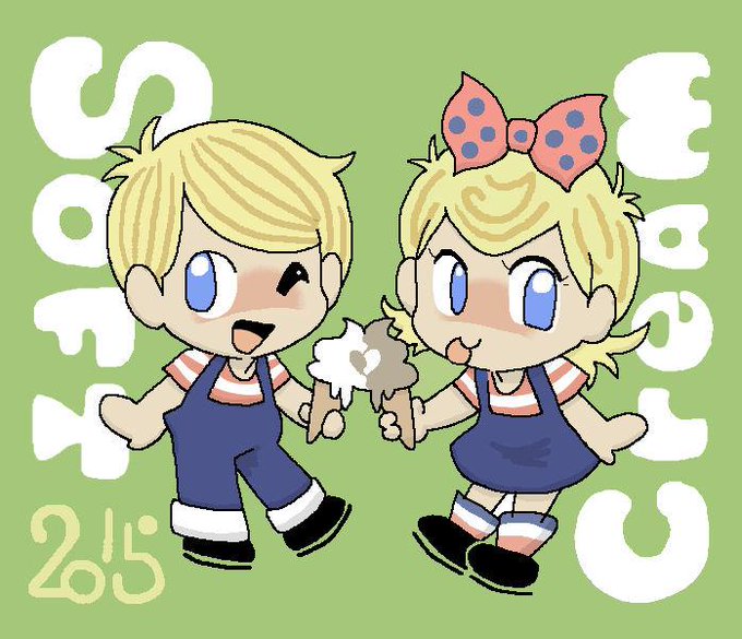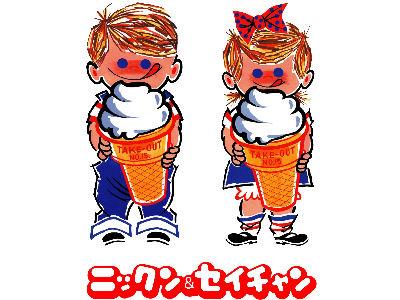#ソフトクリームの日 記念日なので、売ってるお店でよく見るキャラを描きました。(参考画像つき↓)「日生」のニックン&セイチャン。この子たち、ず~っと海外キャラだと思ってたら、日本の会社のキャラなんですってね。知らなかった・・