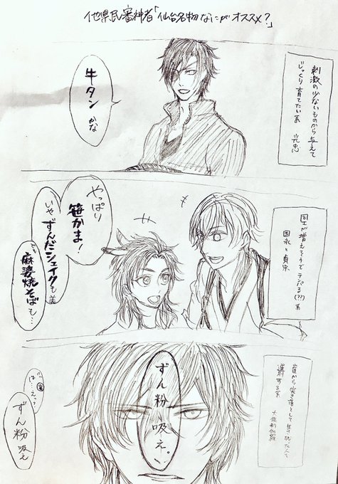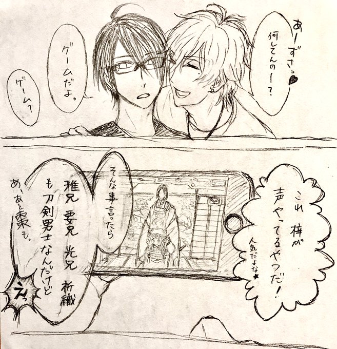 モーメントで見たつぶやきが元です。勝手に描いたけど大丈夫、だよね…?光忠さんのは「決まった、かな?」ってカンジで。