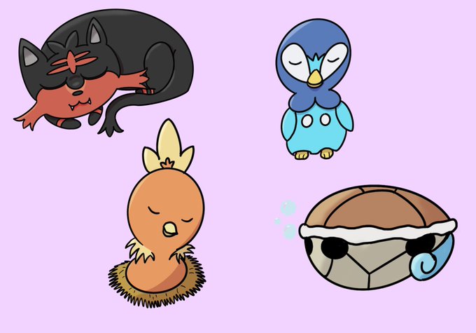@DeePeeArts I started making these sleeping Pokémon starters (and I might turn them into stickers later idk) 💖