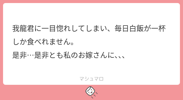 【マロ返】ありがとうございます! 白飯が一杯しか食べられない…!?( ´゚Д゚`) お嫁さんには出来ませんが、我龍くんなら見かねて不器用に誘いつつも腹の膨れる料理めっちゃ作ってくれるやもしれません(´◉◞౪◟◉)𓌉𓇋 🥩