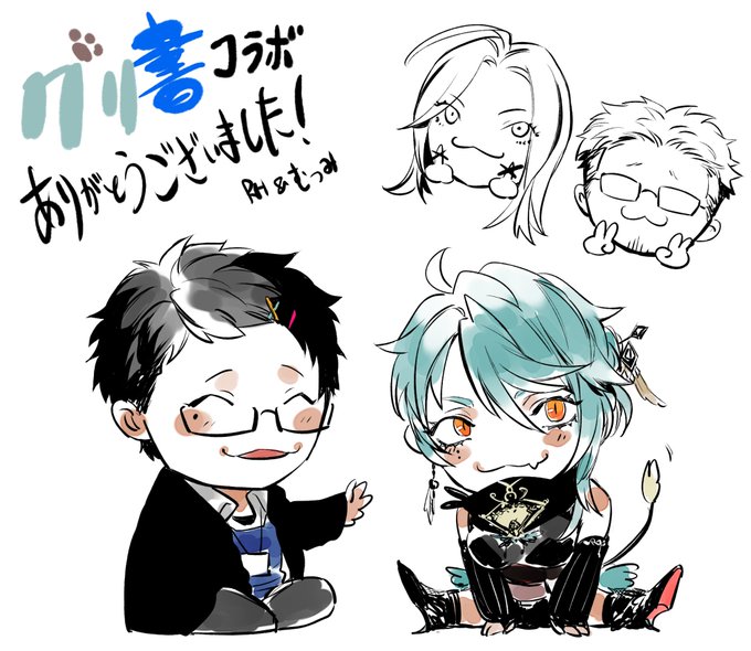 グリ書×ごくどうのコラボイラスト完成…! 遊翔アビさん( @yuuto_abi )と楮朝くん( @asa_kouzo )を #ごくどう テイストで描かせて頂きました✨ グリ書:RH 背景:寺本むつみ( @mutsumi_TRMT ) #アビの筆毛 #朝の挿絵