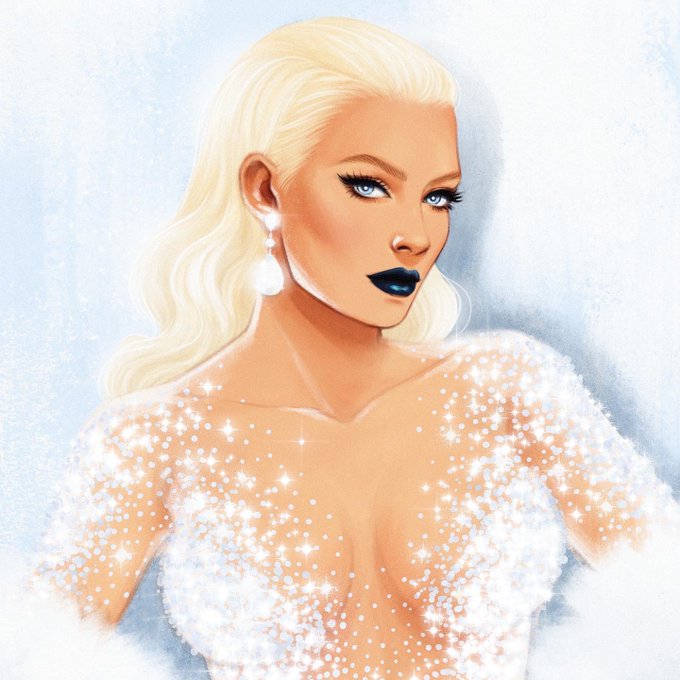 Emma Frost for my upcoming Women’s History Month variants at Marvel! Each of the 8 covers I’ve created will feature fashion from the character’s debut year. Emma was created in 1980, and I pulled inspiration from dazzling red carpet looks from that year for the White Queen. 🤍✨