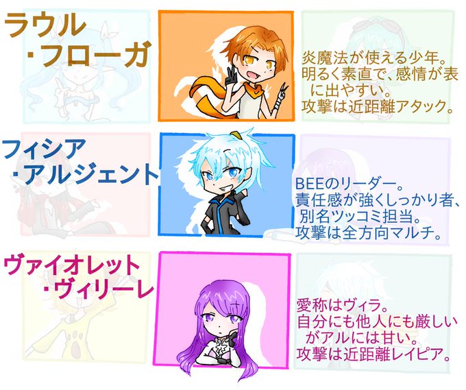 @jujubyonn2139 とりあえず絵だけ出しとこう とりゃ。 左上から右に、リリア、ラウル、シーナ、ブレイド、フィシア、アル、パニィ、ヴィラ、ディンゴ、です。