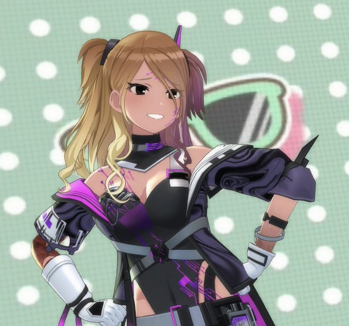 愛依の衣装、サイバーチックでかっこいいんだけども、肩とか胸元ざっくりな所と鬼ハイレグにまず目がいってしまう、これ配布はありがたい #シャニソン