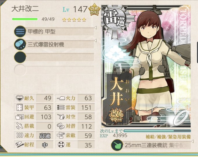 明日から艦これハロウィンイベント。今年こそ大井っちの運改修を完了させる。 余ったら島風に回す予定。