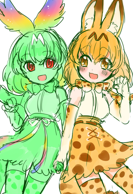 カラカルに懐いてるニホンオオカミちゃすきです・・・サーバルも混ざって遊んでて・・・(キャラクエ大好きマン)