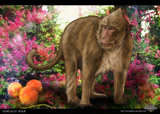 架空の猿を描きました。鶏冠(とさか)があるから鶏冠猿。
