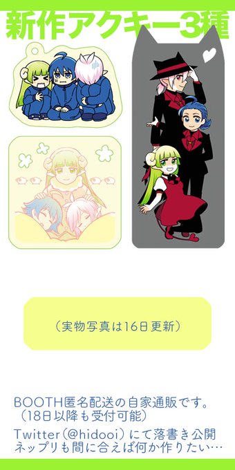 新作アクキー3種とtwitterで色々公開予定!