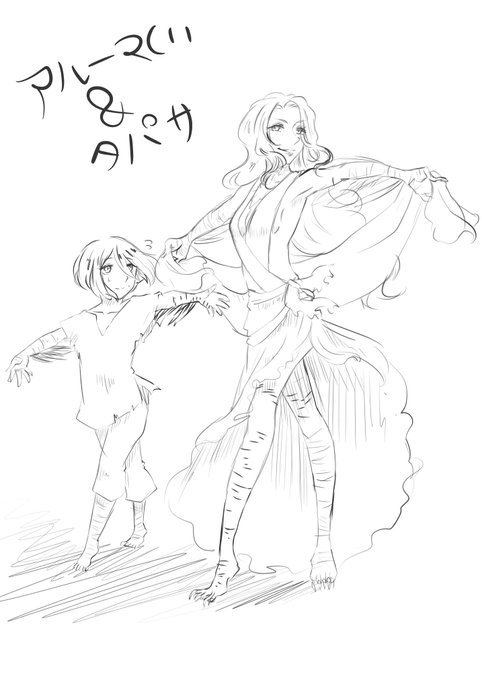 ゴリゴリ描きたくなって描いてたけど色分けが急激に面倒に感じて他んとこ塗ってたらこんなんになったていうやつ 完成はさせ…たいねぇて感じ(-ω-)ちなみに姉弟だよ