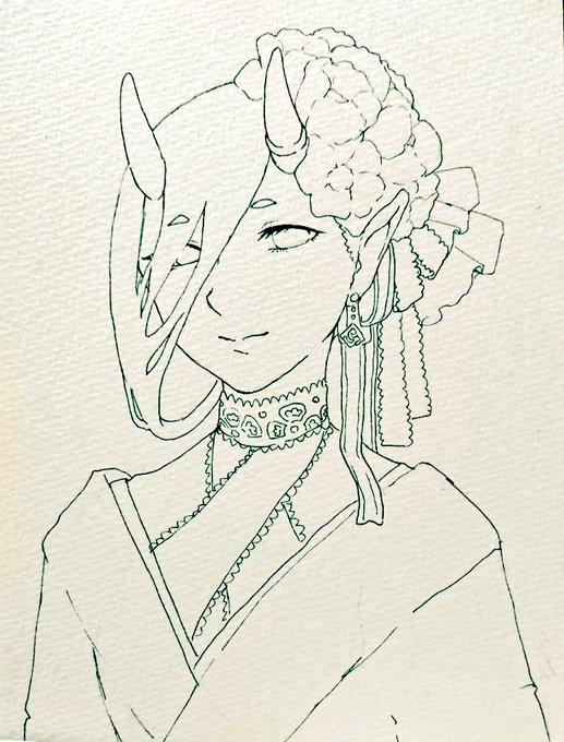 明日出かけるしちょっとでも何か描きたかったから描いたやつ 一応カラー予定