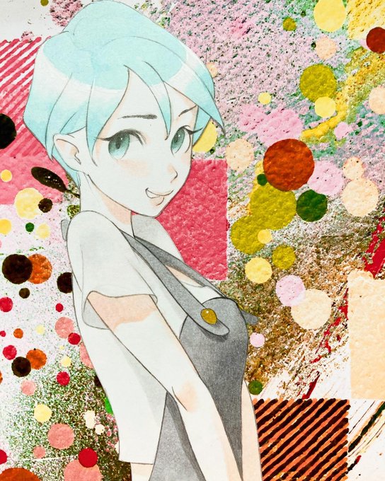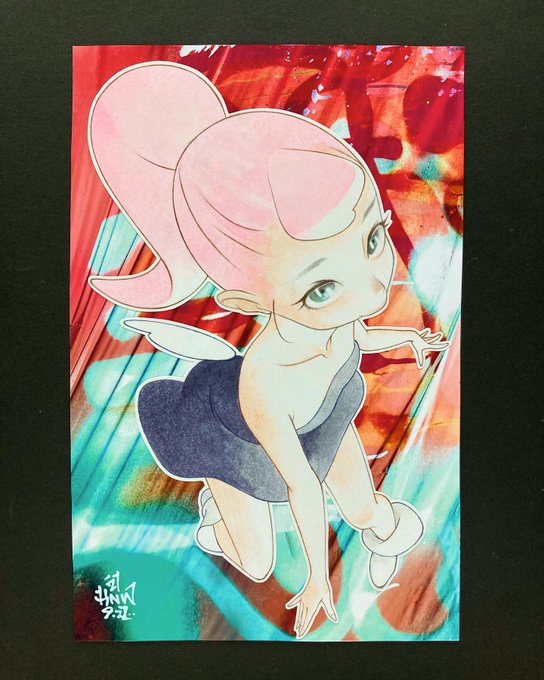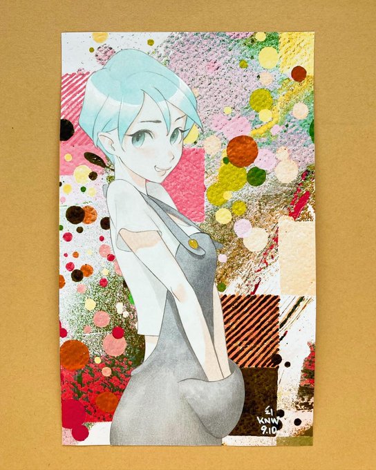 9月分の #今月描いた絵を晒そう ベスト4。二人で1枚のアナログ絵を毎日描いています。キャラやレタリングは相方ESTRK。背景、抽象、色塗りは私CONOMIが担当です。たぶん1,421枚目。画材は色々(ポスカ、コピック、水彩、スプレー、etc…)