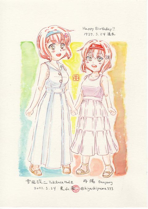 お二方の衣装を参考にアレンジしたものを描きました😊