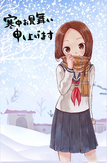 #高木さんめ おばんでござります今週は 寒波が来るらしいので 以前から描き貯めて居た高木さんと ミクさんで寒中見舞いです❣️
