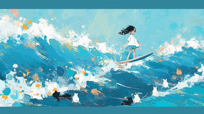 フリーイラスト(AI生成)です。 サーフィンを楽しむ少女!🌊🏄 ー 縦9×横16:おおよそPCサイズ ー 常識の範囲内でお楽しみください!(一応プロフィールに詳細がございます。利用前にご確認願います🙇♀️) #AIイラスト #フリーイラスト #フリーアイコン #フリーヘッダー