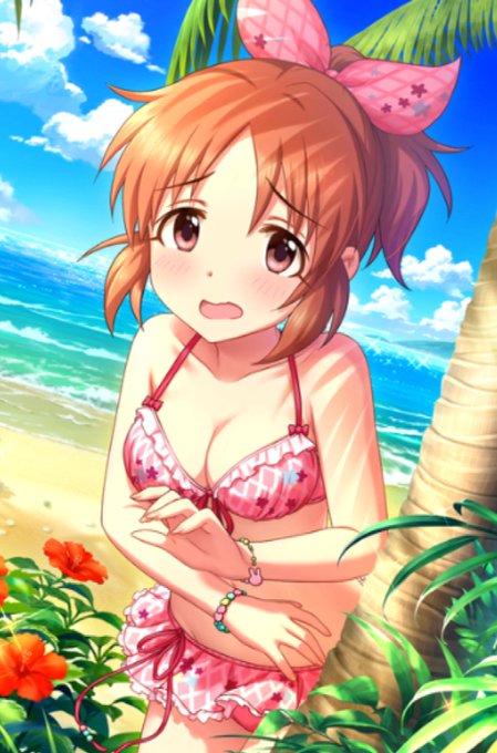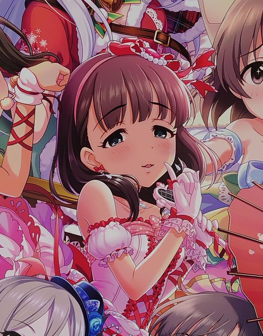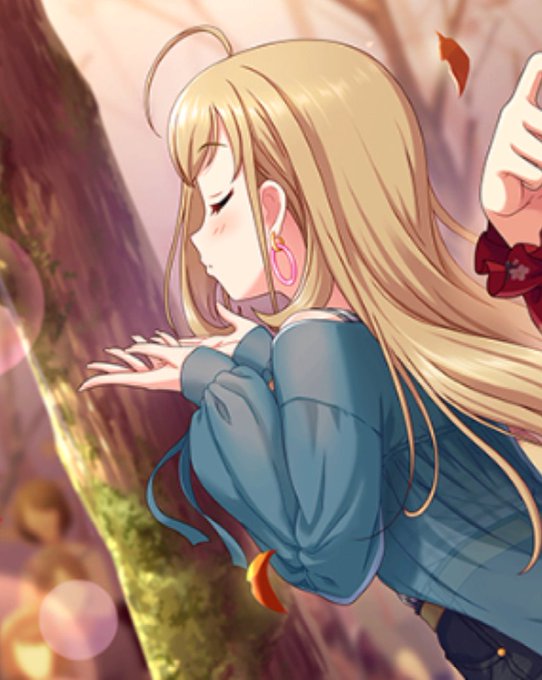 去年10月のキャラバン報酬のSR千鶴ちゃんに写り込んでるはぁと、いまだに #佐藤心 のイラストで一番好きだわ あれからもうすぐ一年か…