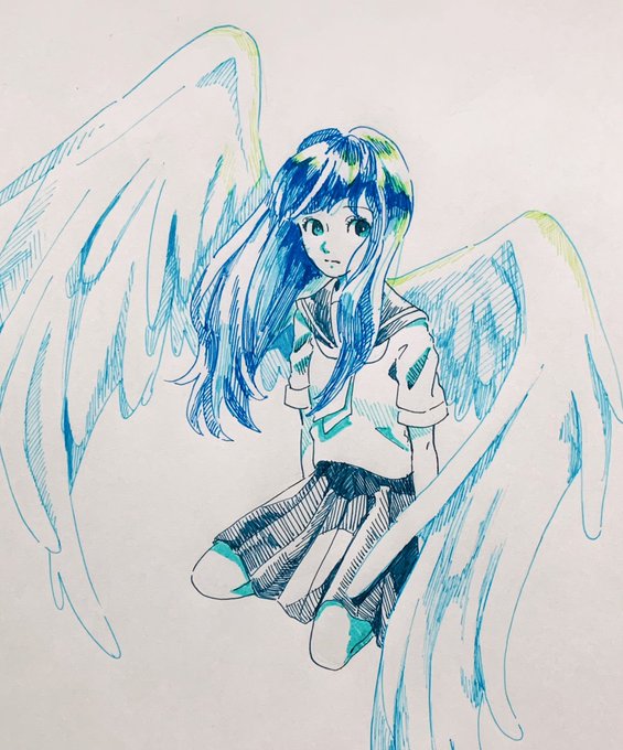 #青で繋がるみんなの輪 最近描いた青い絵3つ。