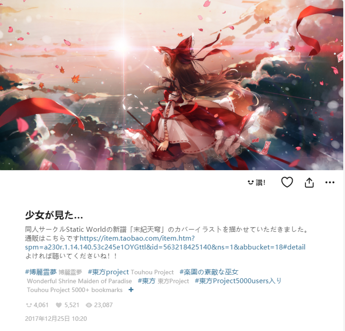 公式作品は同人作品を盗作します。 背景は同人サークルStatic World「末紀天穹」のカバーイラスト。 https://t.co/UIp769JK4e