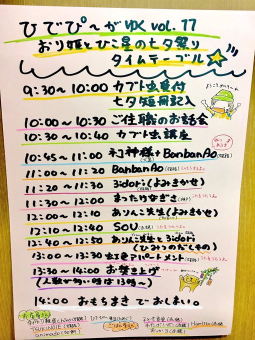 [拡散希望] 明日はいよいよひでぴ〜がゆく七夕祭りです(*´ω`*)明日は雨の予報の為、急遽、普門寺さんの中で開催させて頂きます◎普門寺の駐車場やアクセス、タイムテーブルはこちらから💁♀️✨来られる方は気をつけて来てくださいね🐰✨