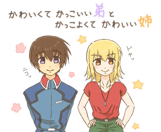 PCの充電中や動画書き出し中に描いてたキラとカガリ! タイトルも添えて🫴