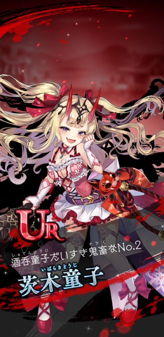 おはようだうー 今日ガチャったら茨木童子お迎えしました!! 初の炎属性URお迎え!! 欲しいキャラ連続でガチャに来てるから石足りない…
