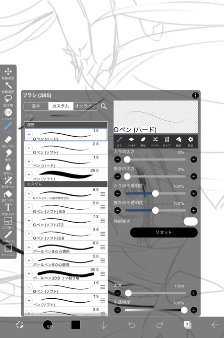 皆さんってペンの太さどんな感じなんですかね…? 私はこんな感じです 大体Gペンソフトの2.8か3.6、ハードの1.0です🥹
