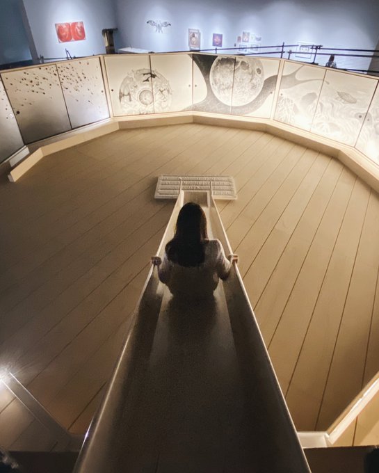 鴻池朋子『ちゅうがえり』 作品に向かって滑り降りていく体験、はじめてだったな。鴻池さんの個展は毎回生命の息吹にドキドキする🐕 アーティゾン美術館もはじめてだったけどエントランスが吹き抜けになってたりで気持ちのいい場所でした。ゾン美と呼ぶことにする
