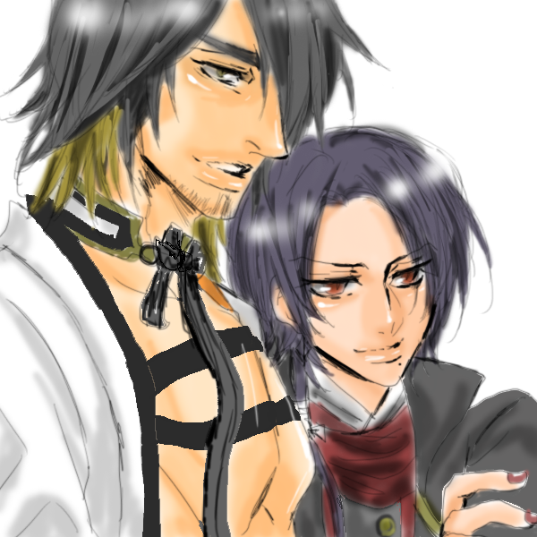 妹から構図を譲って貰って描いた長清。初めて二人が一緒の画面に居る絵を描きました。