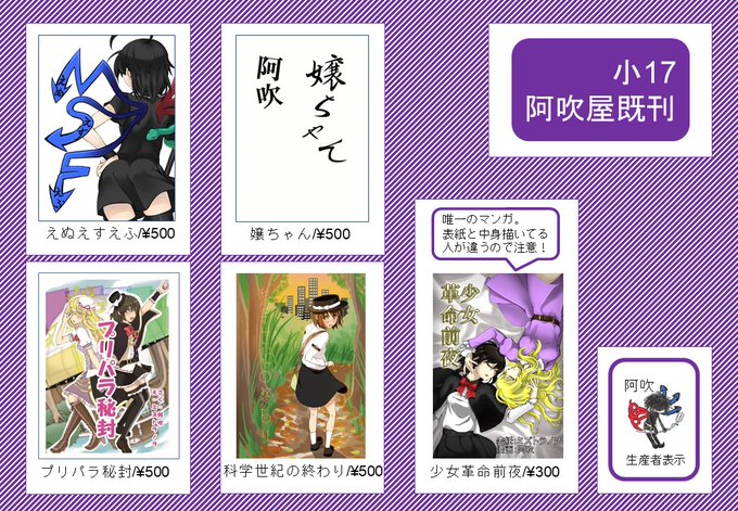 第11回 #科学世紀のカフェテラス 小17阿吹屋のお品書きですわ~!!!例大祭新刊の『密漁系秘封倶楽部2』が文庫判124P800円!他既刊多数!!!2022/9/11は京都パルスプラザで僕と握手!!通販もあります!(おわびもあります)