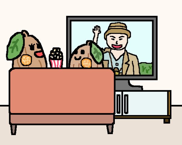 「男はつらいよ」見ながら、カカオと子は◯◯、伊予柑でパック #だじゃれ #ダジャレ #男はつらいよの日 #今日は何の日 #イラスト #お絵描き #寅さんの日