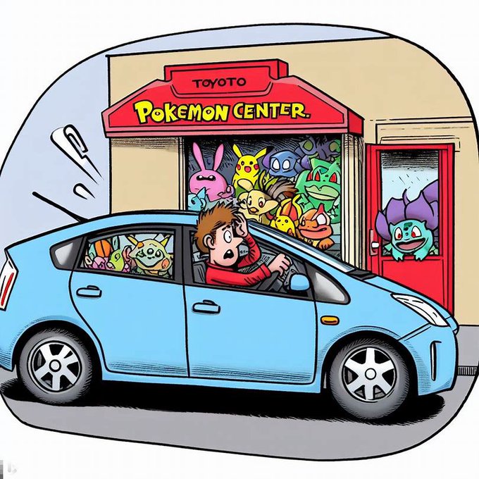 ポケモンセンターに突っ込むプリウス #bingimagecreator