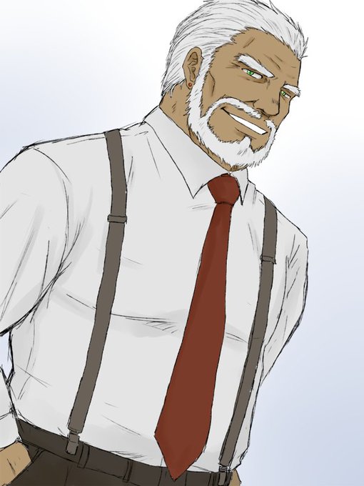 #おじさん版深夜の真剣お絵描き60分一本勝負 オールバックとサスペンダー なんとか色塗りまで漕ぎ着けたもののやっぱり60分は慣れが必要ですね