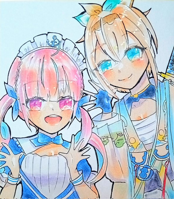 『#湊あくあ さんと #風間いろは さん』 #あくあーと #いろはにも絵を #ホロライブ #イラスト