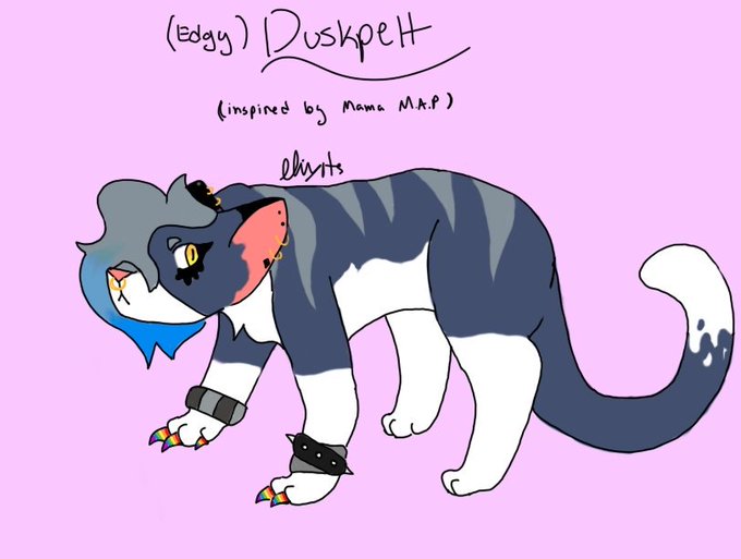 I usually don't post my art on here but... wanted to share my warriors OC, Duskpelt drawn in the "Mama We All Go to Hell" M.A.P. style, hosted by my favorite animator @Draikinator !