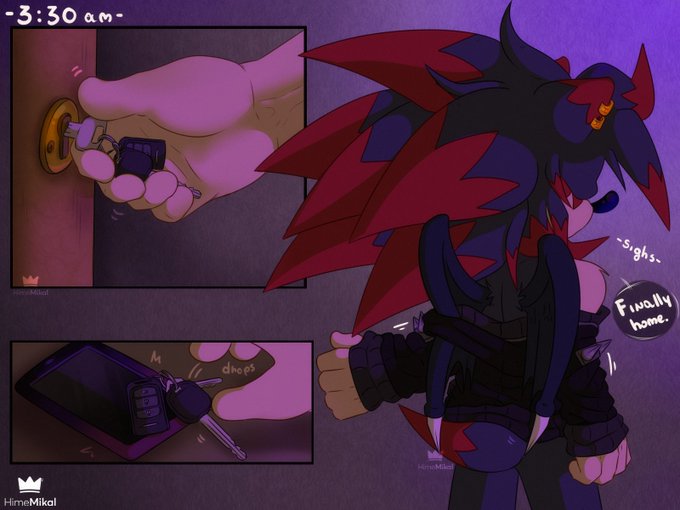 Small comic of Blade coming back home after his night shift at work and Moon was "waiting" for him <3