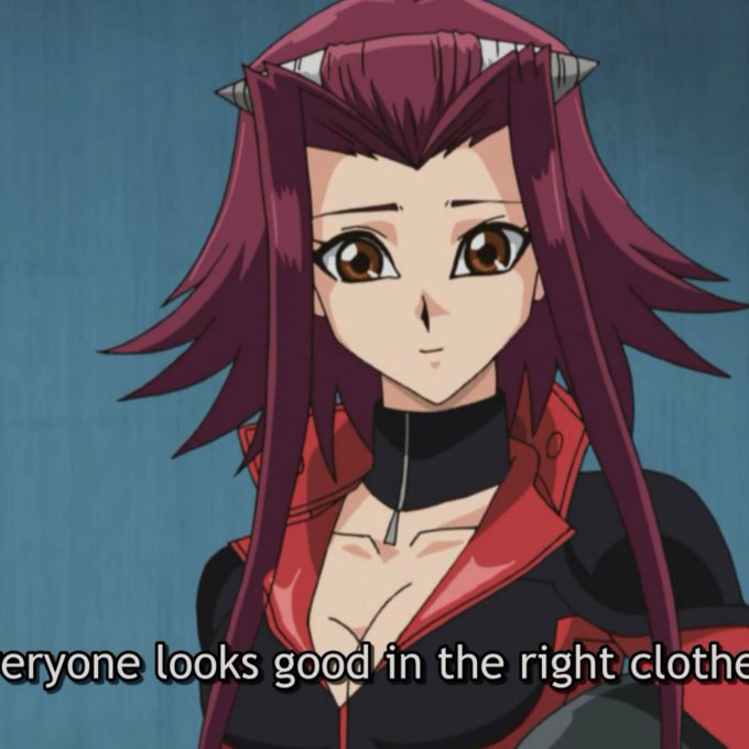 Yusei probably had day dreams over Aki in her riding suit after this. and why wouldn't he??? She's gorgeous "it fits you" is Yusei speak for you look beautiful