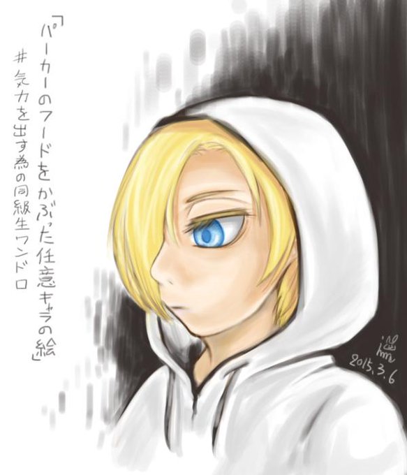 1時間なら厚塗りの方が描きやすいような気が、、、する! 今回は進撃からアニで。(・ω・)ノ⌒□ 『パーカーのフードをかぶった任意キャラの絵』 #気力を出す為の同級生ワンドロ