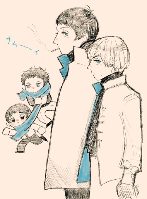 模写 わちゃわちゃしてる🖐🖐と リズム隊のお洋服かわい〜という絵