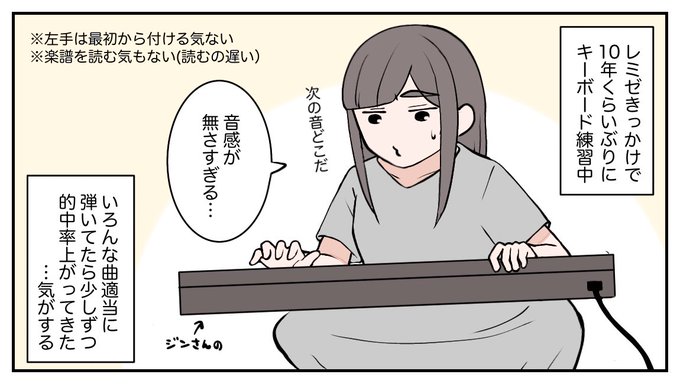 ジンさんが起きてこないから一人で遊ぶ〜 キーボ練習中だけど小指が短くてシのフラットが厳しい🤣 #絵日記