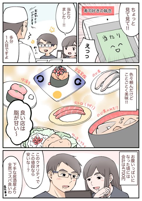 美味しい寿司は美味しい(語彙力) ジンさんくじ運無いのに執念の引きだった...笑 #絵日記 #日常漫画 #コミックエッセイ #エッセイ漫画 #夫婦漫画