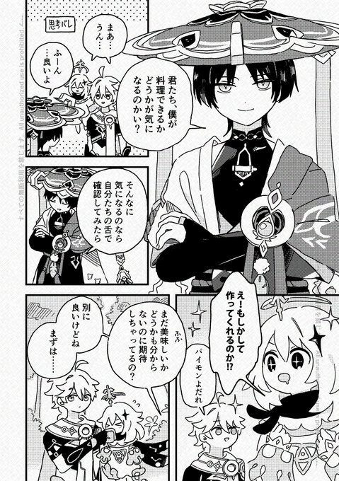 『一味同心』2023/5/3発行 放浪者が旅人とパイモンに初めてオリジナル料理を作ってくれるお話のweb再録です。お誕生日おめでとう! (1/5)