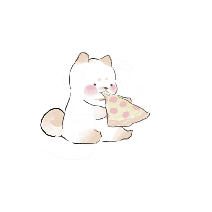 今日はおっきなピザを食べたよ🍕 #イラスト #ピザ #絵 #柴犬