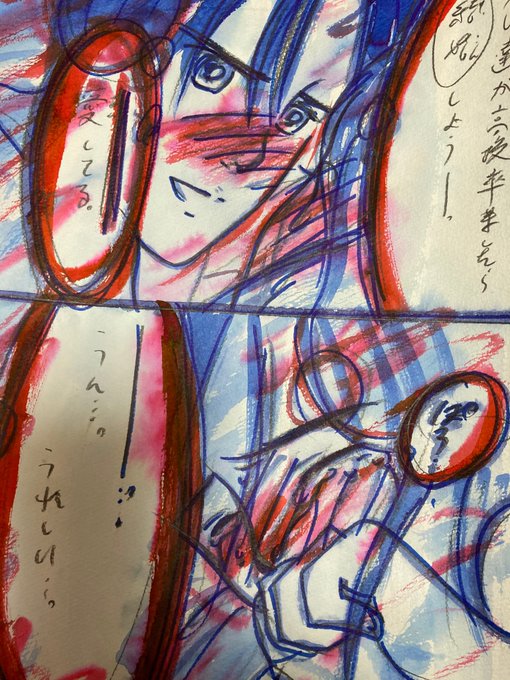 新作漫画「ラブストーリー。-桜の季節の物語。-」仕上げの続きです。😊🍀🍎👍⭐️よかったよかった。。の、二人です。😊🍀🍎👍⭐️