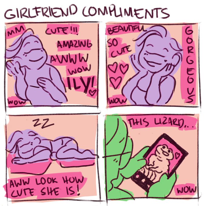 my girlfriend makes the best compliments but sometimes i think theyre not directed at me.... the lesbian struggle
